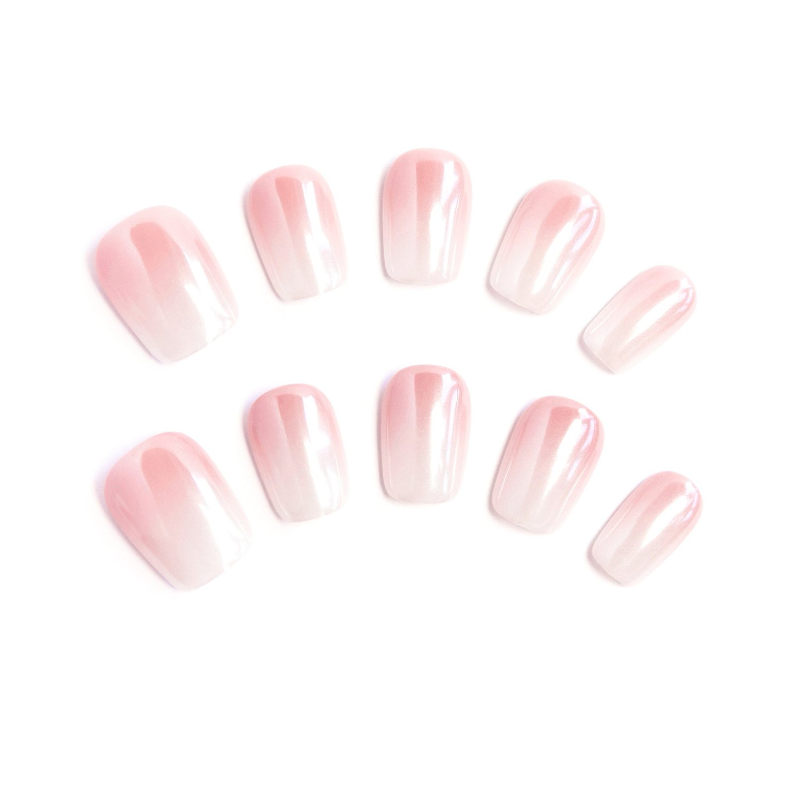 Sheer blush gradients glow with pearlescent sheen, like morning dew lingering on rose quartz — a whisper of delicate luxury for everyday wear.