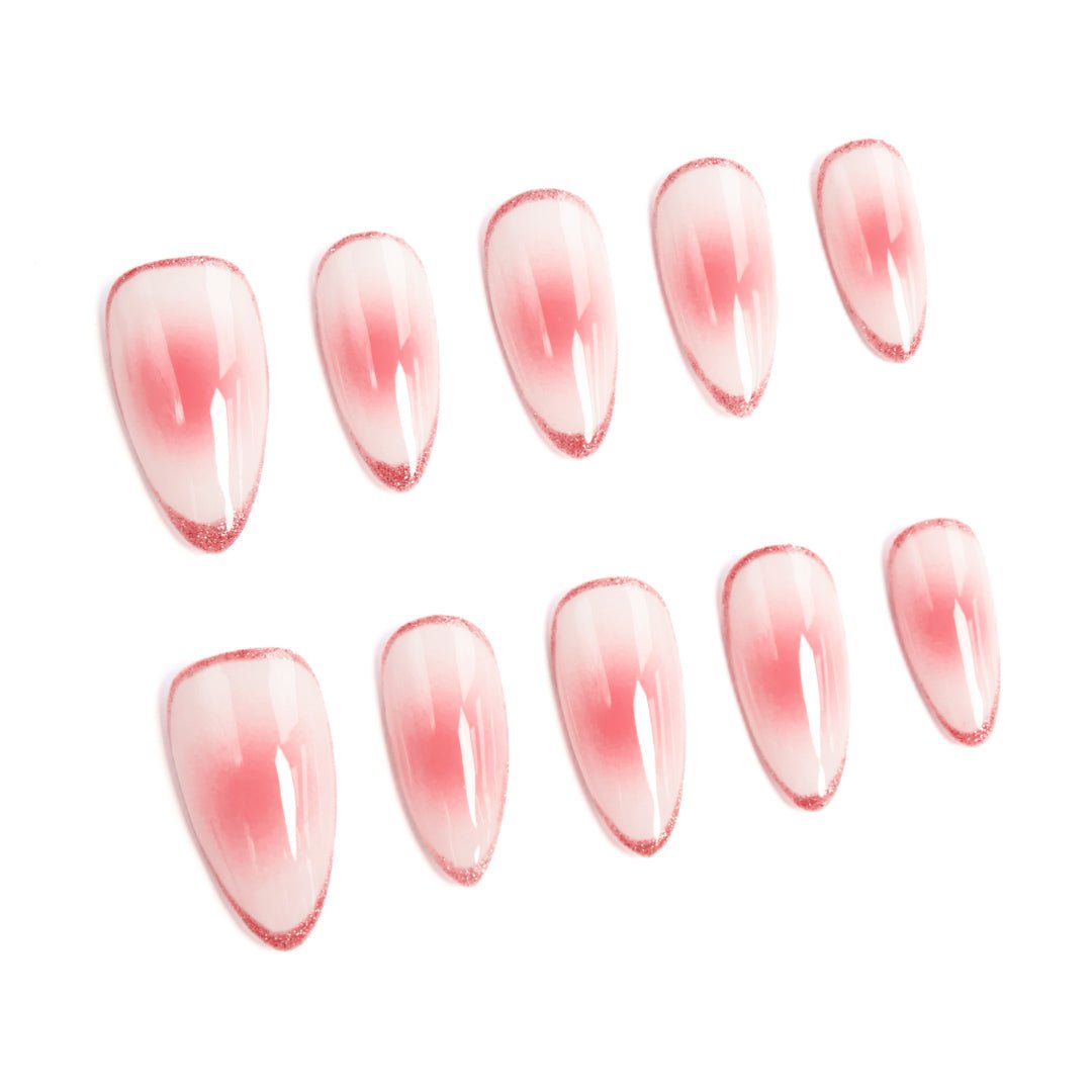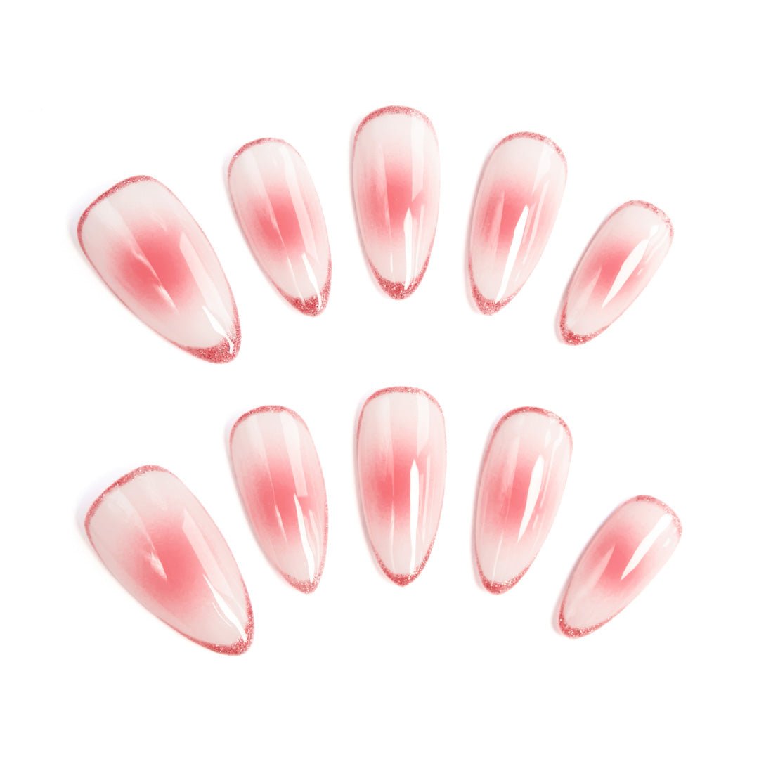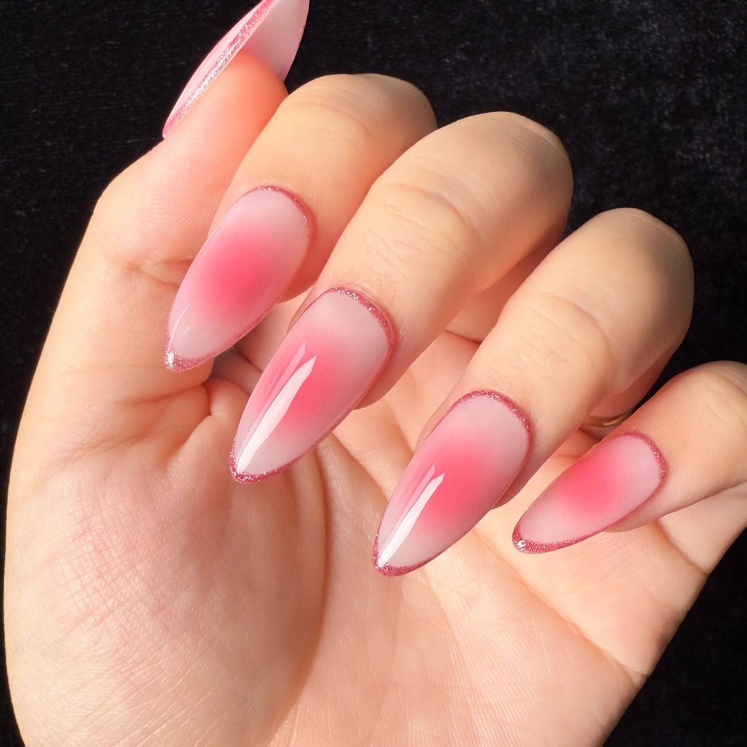 Nude pink blends like peach smoothie on nails, with glitter edges dotted with tiny stars, and glass-like sheen locks tenderness at fingertips. Pair with a shirt for “understated elegance others can’t copy” at work; match with a dress on dates—fingertips look like they hide rose quartz, mixing sweetness and luxury into one. Who could resist falling for it?