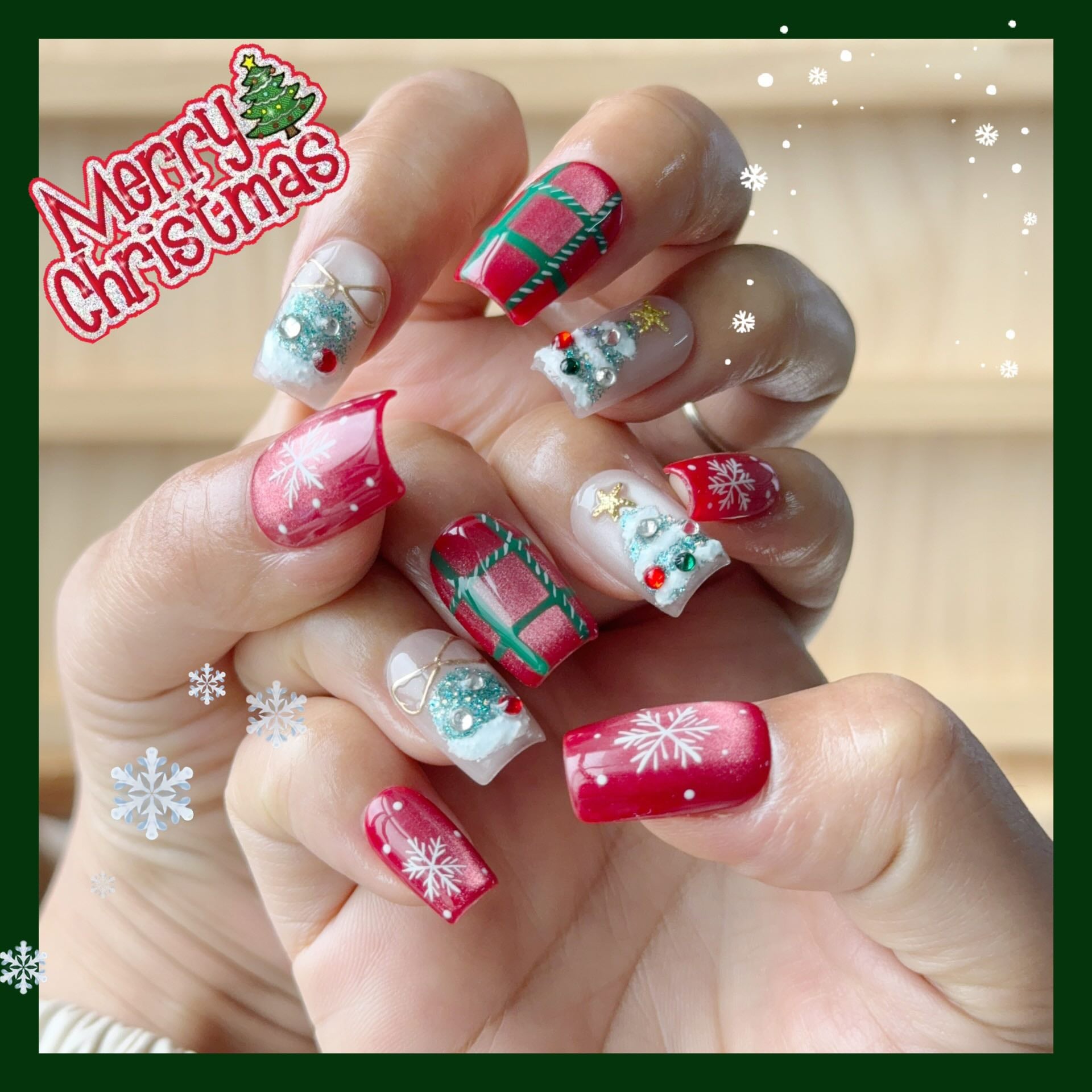 Red plaid and snowflakes paired with 3D Christmas trees adorned with crystals drape over round nails like a curated Christmas gift box’s delicate surprise. Each set is a “festive must-have”—no effort needed, from Christmas parties to winter markets, fingertips glow with a holiday charm that turns everyday moments into Christmas fairy tale scenes.